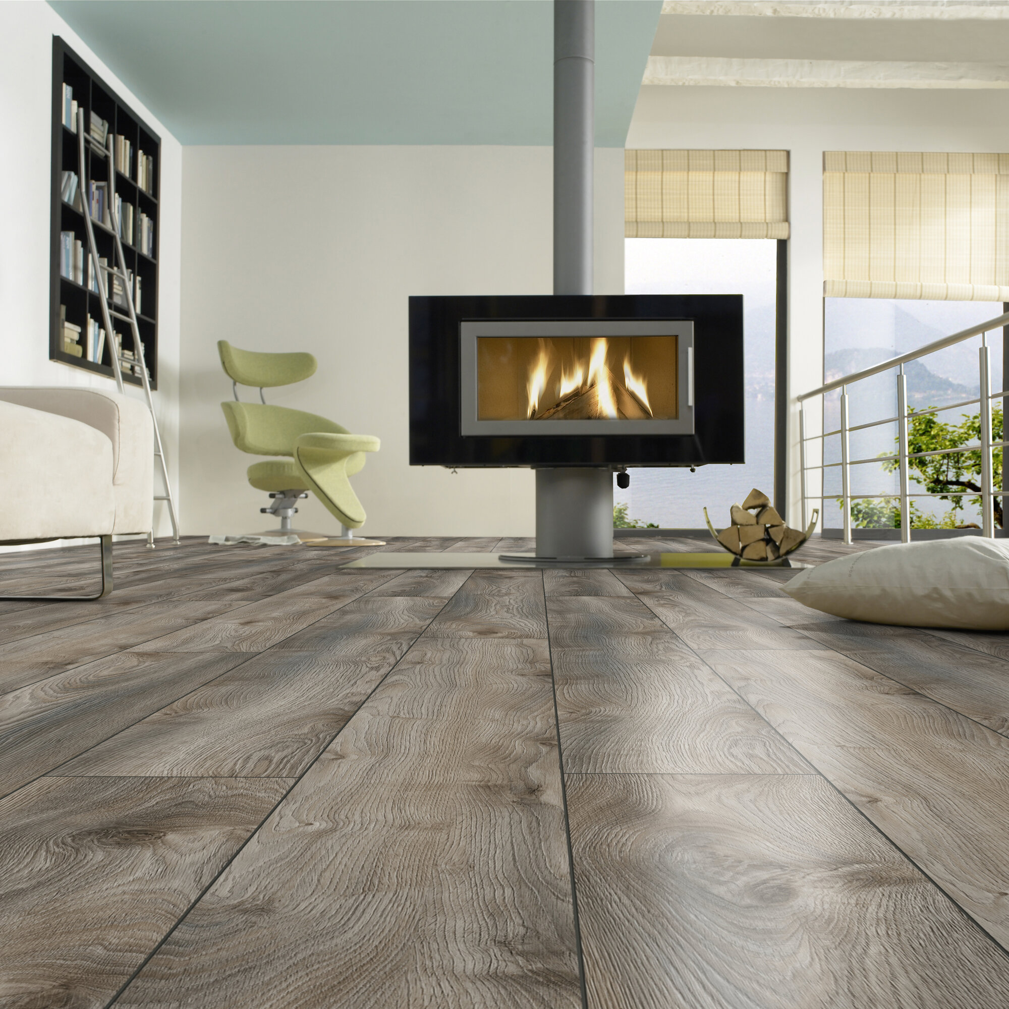 Powerful and earthy: Makro Oak Grey. Grey, rocky tones meet warm caramel, blending in playfully with the natural wood grain. The extra-large panels captivate with a natural experience in the room.